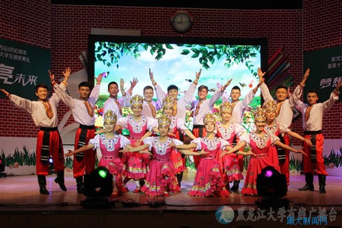 为庆祝五四青年节,充分展现黑大学子的风采,颁奖典礼中穿插了精彩的文艺演出。刚刚参演了今年“五月的鲜花”全国大学生校园文艺会演的歌舞《小路》,一出场便成为了全场的焦点,节目将极具俄罗斯特色的舞蹈与歌曲融为一体,通过中俄两国青年学生欢快的舞蹈,演绎出中俄两国青年学生的青春风采和活力,也凸显了我校独树一帜的对俄办学特色;器乐重奏《单簧管波尔卡》同样引起了观众的强烈共鸣,来自校学生军乐团的乐手们用手中的乐器演奏出一曲铿锵有力的青春赞歌,表达了对青春的无限热爱;由校有线广播台带来的诗朗诵《写给未来的你》悠扬动听,朗诵者们满含着青春热情,表达着用不懈努力换取美丽年华的决心;校学生艺术团的歌手和舞者们一同演绎的结束曲《青春万岁》充满着蓬勃活力,掀起了全场热潮。