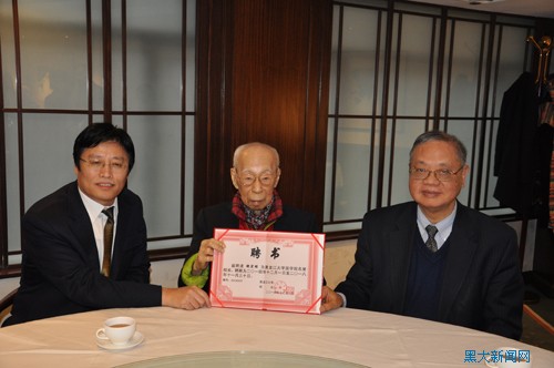 12月18日,我校聘请饶宗颐先生为黑龙江大学国学院名誉院长仪式在香港大学饶宗颐学术馆举行,丁立群副校长代表我校向饶宗颐先生颁发聘书,聘期为四年。