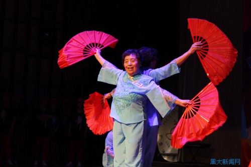 歌声打动人心,舞蹈以形传神。《中国范儿》营造出新年吉祥热闹的氛围,将中国传统文化展现得淋漓尽致;太极扇表演《荷塘月色》刚柔并济,充满了飘逸潇洒的美感与武术的阳刚威仪,极具观赏性;2014年广场舞之王《小苹果》,动感的音乐和舞姿把现场的气氛带到高潮。在欢乐的氛围中,曾获得黑龙江省杂技舞蹈大赛一等奖的柔力球节目《春天的芭蕾》吸引了全场观众的眼光,博得了热烈的掌声。