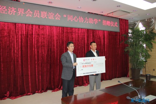 民进黑龙江经济界会员联谊会于长江会长在讲话中表示,“黑龙江大学每年为我国、我省输送大批优秀人才,为社会发展作出重要贡献。作为民进企业会员,我们一直十分关注、关心教育事业,并把支持教育事业作为自己应尽的责任和义务。我们希望通过此次捐赠,汇聚更多来自社会各界的爱心与力量,为广大学子插上梦想的翅膀,为他们创造更加灿烂美好的人生。”