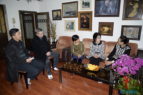 何校长至公共外语教研部王磊老师(右四)家走访慰问