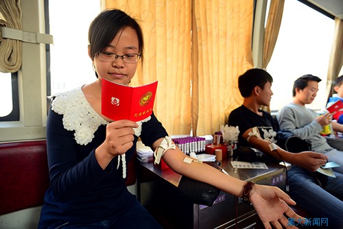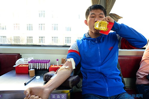 许多陪同献血的学生在了解整个流程后,也希望参与到公益事业中来。张前程同学来自化学化工与材料学院,从最初的有些恐惧到最后成为献血奉献者中的一员,志愿者的讲解从观念上改变了他的想法。他了解到所献血液要经采集、储存、分离、检验多个步骤后才能应用到临床急救中,而伴随着临床用血量的不断增长,应该有更多身体健康的人自愿献血。他开心地说:“400毫升丝毫不会影响到我们的身体健康,却能在无形中去挽救另外一个人的生命,我觉得我做了一件非常有意义的事。”几天来,因献血者踊跃参与,原定于下午5点结束的献血活动几乎每天都会延续到6点结束。
