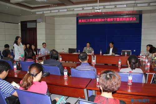 会上,何颖校长代表学校向广大教师送上了节日的问候。她追溯了“教师节”的由来,并深情讲述了自己在黑龙江大学度过1985年第一个教师节的经历,对当时学校送给全体教师的精美本子记忆犹新。何校长颇有感慨地说,“时光荏苒,我们在教育战线上共同迎来了第30个教师节”,她希望与会同志以此次座谈为契机,畅所欲言,踊跃建言,把自身对教师职业的领悟、对学校当前工作及未来规划的思考都谈出来,为黑龙江大学各项事业的发展贡献力量。