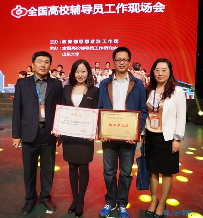 5月7日至9日,第三届全国高校辅导员职业能力大赛决赛在山东大学举行,我校电子工程学院团委书记、辅导员田婧妤以总分第一名的成绩,从来自全国六大赛区、51所高校的60位决赛选手中脱颖而出,摘得桂冠。教育部党组副书记、副部长杜玉波,山东省副省长夏耕,教育部思想政治工作司司长冯刚等出席活动并为获奖选手颁奖。黑龙江省教育厅学生处副处长袁伟、我校党委学工部部长丁宏和电子工程学院党委书记王斌亲临颁奖典礼现场为参赛选手送上祝福。