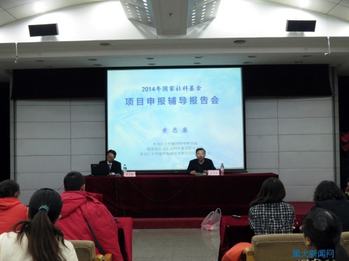 随后,黄忠廉教授就国家社科基金项目的申报背景、课题指南、项目选题、整体论证、基本思路、研究方法、主要观点、梯队搭建、研究基础、书写格式和提高申报质量的具体做法等重要方面进行了详细讲解和现场答疑。黄忠廉教授深入浅出的讲解博得了参会人员的一致好评和热烈欢迎,此次辅导为实现2014年国家社科基金项目申报工作的良好开局打下了坚实基础。(责任编辑:张笑雷 摄影:张旭泽)