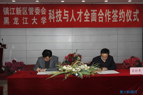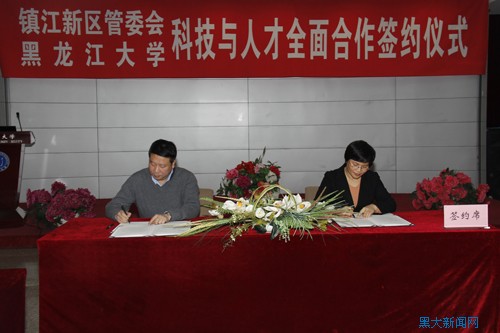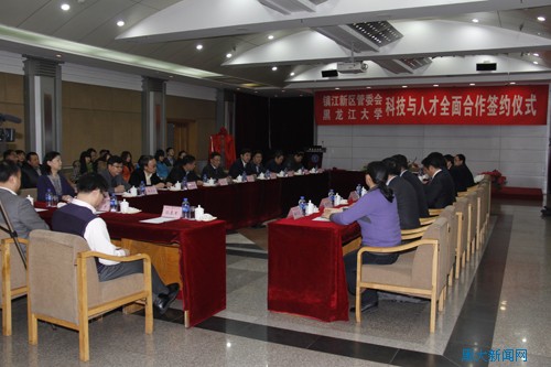 仪式上,新区管委会副主任杨菊兰介绍镇江新区产业、载体情况和政策,我校付宏刚副校长介绍了理工科科研成果。双方先后签订了《镇江新区管委会--黑龙江大学科技与人才全面合作协议》和《镇江新区管委会--黑龙江大学人才培养与就业实习基地建设合作协议》。