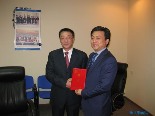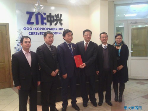 12月5日,中俄学院聘请中兴通讯股份有限公司副总裁、俄罗斯区总裁丁灏敏担任名誉院长仪式在莫斯科举行,张政文校长亲自为丁灏敏总裁颁发聘书。