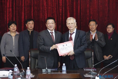 1月10日上午,我校聘请俄罗斯科学院布兹尼克V.M院士为校对俄合作俄方首席顾问聘书颁发仪式在常委会议室举行。我校校长张政文、副校长闫鹏飞,国际合作与交流处、人事处、重点建设与发展工作处、科学技术处、人文社科处、中俄学院、俄罗斯研究院、中俄科技合作信息中心等相关单位负责人出席仪式。仪式由闫鹏飞副校长主持。