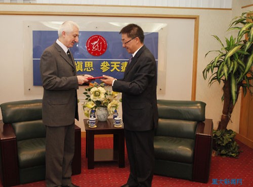 仪式开始之前,张政文校长聘请莫尔多万院士为我校客座教授,并为其颁发聘书。