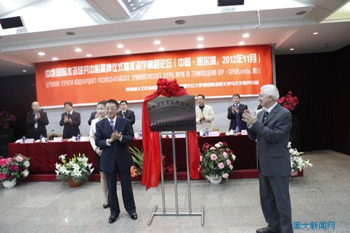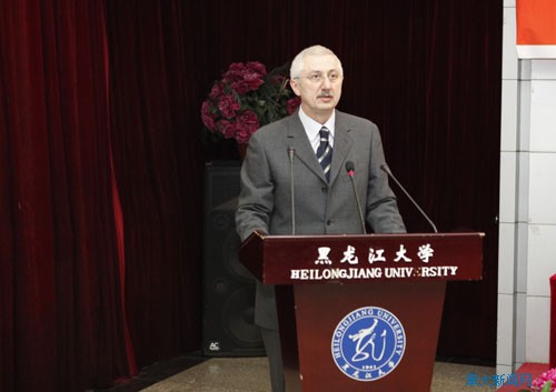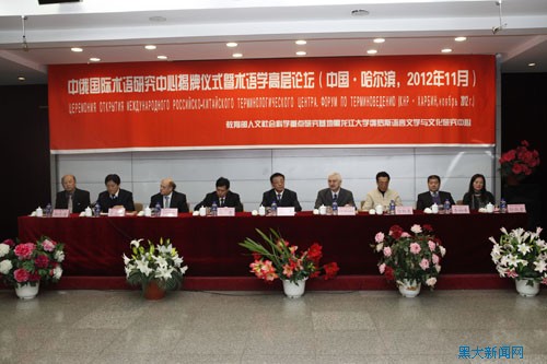 11月12日上午,中俄国际术语研究中心揭牌仪式暨术语学高层论坛在我校国际合作与交流处多功能厅举行。俄罗斯科学院维诺格拉多夫俄语研究所所长А.М. 莫尔多万院士,俄罗斯科学院维诺格拉多夫俄语研究所术语中心主任、中俄国际术语研究中心俄方主席С.Д. 舍洛夫教授,全国科学技术名词审定委员会副主任刘青,中国辞书学会秘书长、《辞书研究》主编徐祖友,黑龙江省教育厅科技处副处长李柏峰出席会议。我校校长张政文,副校长丁立群,中俄国际术语研究中心中方主席、中国术语研究所所长郑述谱,俄罗斯语言文学与文化研究中心主任孙淑芳,学校相关职能部处、学院领导参加了会议。会议由丁立群副校长主持。