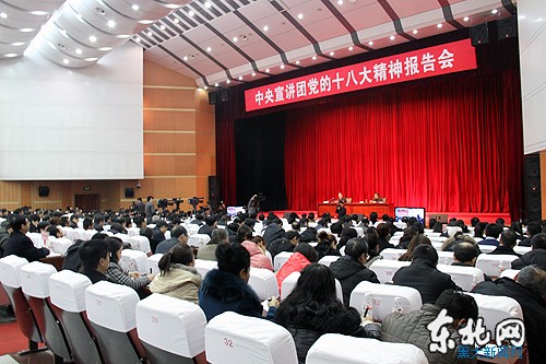 11月29日上午,中央宣讲团党的十八大精神报告会在哈尔滨省委党校报告厅举行。党的十八大精神中央宣讲团成员、教育部部长袁贵仁作宣讲报告,省委书记吉炳轩主持报告会。省委副书记、省长王宪魁,省政协主席杜宇新等出席报告会。我校党委书记杨震,副校长丁立群、何颖,我校国家级教学名师、博士生导师张奎良及学生代表参加会议。