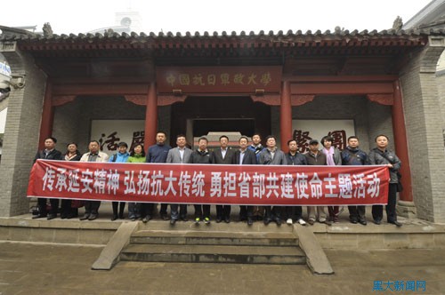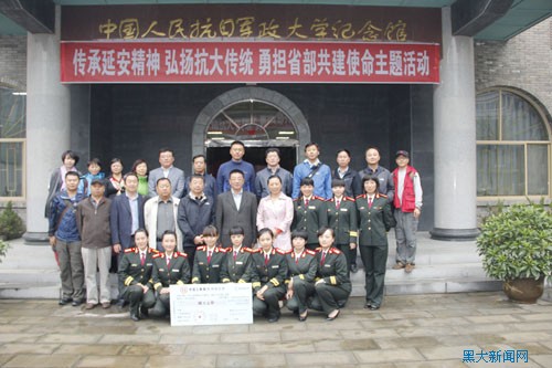 捐款仪式开始前,“回延安”代表团成员至抗大纪念馆参观学习。纪念馆分为2个展厅,包含“抗战将才的摇篮”、“教育方针指航向”、“窑洞大学育英才”、“挺进敌后显神威”、“回师陕北夺胜利”、“抗大精神放光芒”6个单元。展厅总面积达1200平方米,陈列展出100多件历史文物与400多幅珍贵历史照片。黑龙江大学作为由抗大三分校走出去的红色队伍,将秉承“团结、紧张、严肃、活泼”的抗大校风,发扬“志存高远、爱国奉献、艰苦奋斗、自强不息”的黑大精神,续写发展新篇章。