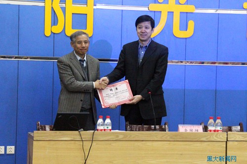 辛国胜校友是英国威尔士大学工商管理硕士、新加坡亚洲管理学院访问学者、瑞士维多利亚大学获工商管理博士。现任深圳市线路板行业协会会长、《印制电路资讯》杂志总编辑、《辛弃疾研究会》会员、深圳市总商会常务理事、深圳市电子行业协会常务理事。受张政文校长的委托,曲科军副书记为辛国胜校友颁发了黑龙江大学客座教授聘书。