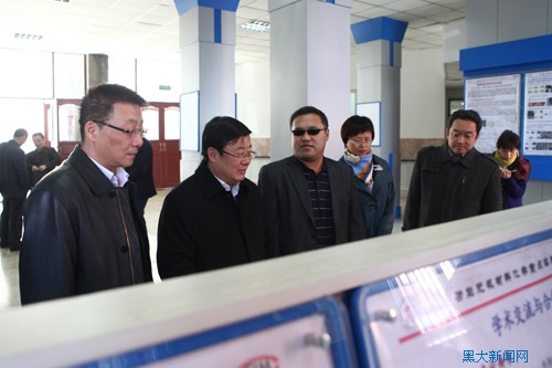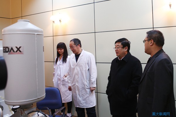 4月12日下午2时,哈尔滨市副市长张显友,哈尔滨科技局局长于沐琳,哈尔滨市政府办公厅处长陈永晰,哈尔滨市科技局计划处处长申义俭、社会发展科技处处长崔新光、社会发展科技处主任科员陈贵斌等到我校考察教育部和省高校重点实验室及工程中心并听取科技成果转化情况汇报。我校校长张政文、党委副书记曲科军、学校办公室主任陈文远、科学技术处处长吕厚均及电子工程学院、计算机科学技术学院、现代教育技术中心、生命科学技术学院、化学化工与材料学院等相关单位负责人陪同考察调研。