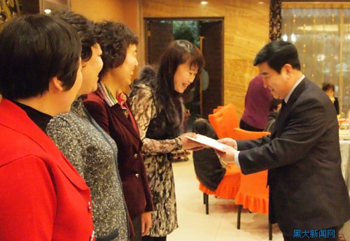 在与会校领导为第四届三八红旗手获得者颁奖后,党委书记杨震代表学校对女教职工们在学校发展建设中做出的突出贡献表示感谢,并向大家致以节日的问候。随后,我校历届“三八”红旗手获得者代表霍丽华、于文秀、丁群和高文敏分别发言,表示将继续以巾帼不让须眉的激情,把全部智慧和力量凝聚到学校的发展建设上来,全面提高自身素质,立足本职,为学校发展建设再立新功。