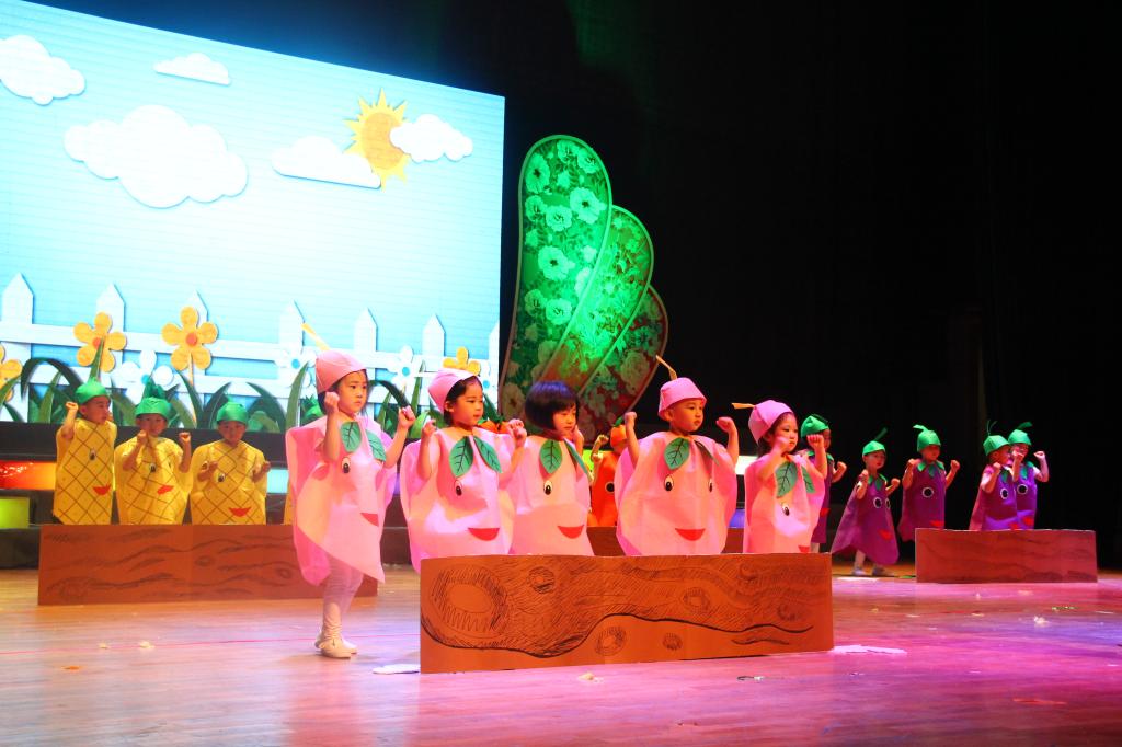 整场演出共十五个节目,包括幼儿园活动花絮、舞蹈、诗朗诵、歌曲等。伴随着《七色光》的音符和幼儿园老师们轻快的舞步,整场演出拉开了序幕;舞蹈《唱唐诗》,展示出了幼儿园对传统国学的重视;朗诵《我们从小当自强》,孩子们抑扬顿挫的声音,表现出下一代们蓬勃的朝气和锐意进取的精神。最后,在舞蹈《精忠报国》中,整场演出圆满落下了帷幕。