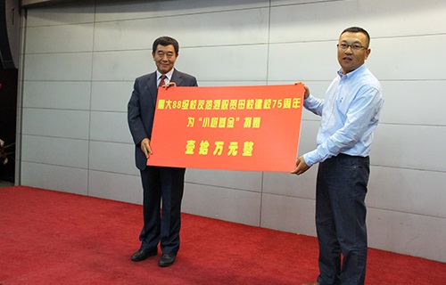 在接下来举行的校友捐赠仪式上,哈尔滨校友会副会长李劲松代表速达集团向计算机学院捐款10万元,哈尔滨校友会副会长、秘书长关大冶代表88级中文系校友向“小树基金”捐款10万。