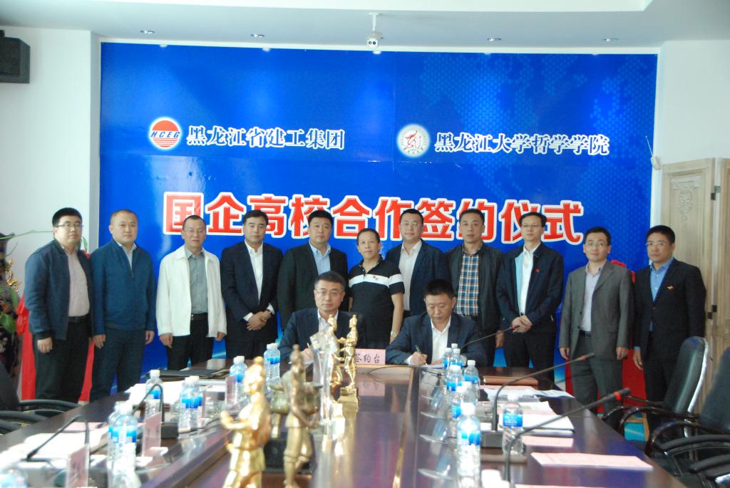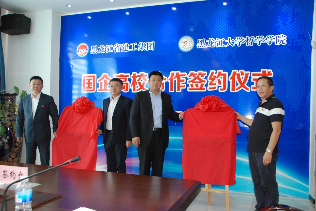 黑龙江省建工集团党委书记、总经理陆要武同志和黑龙江大学哲学学院院长罗跃军分别代表黑龙江省建工集团和黑龙江大学签订了《黑龙江省建工集团与黑龙江大学校企共建合作框架协议》和《黑龙江大学与黑龙江省建工集团共建校外实习基地协议书》,在框架协议签订后,黑龙江大学副校长严明、哲学学院院长罗跃军和黑龙江省建工集团党委书记、总经理陆要武同志、黑龙江省建设集团党委工作部兼人力资源部部长张恩来共同为校企合作和实习基地签订揭牌。