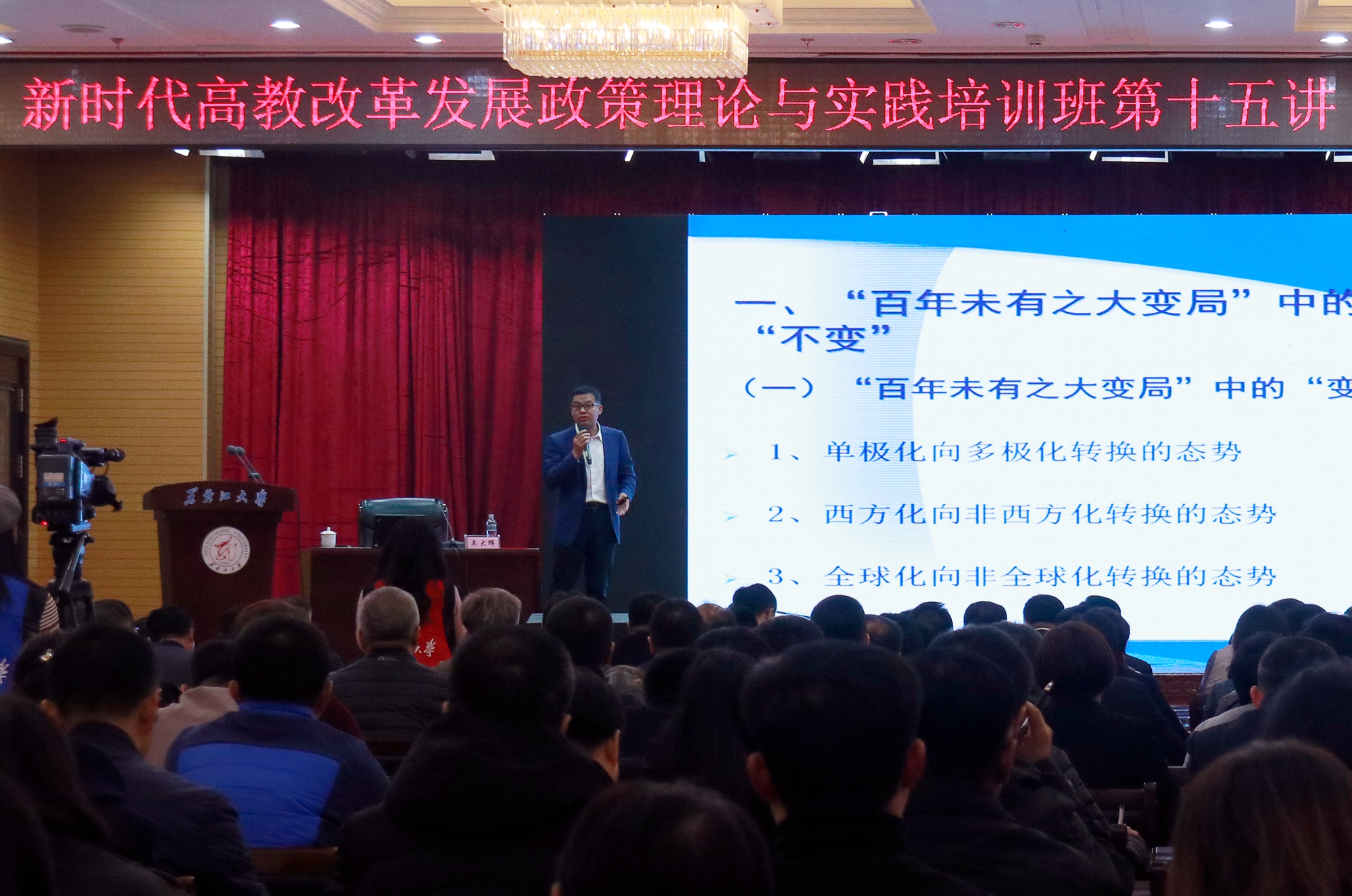 10月28日下午,我校新时代高教改革发展政策理论与实践培训班第十五讲在主楼一楼报告厅开讲。学校邀请了清华大学国际关系研究院教授、博士生导师,国务院发展研究中心欧亚社会发展研究所研究员、中国国际友好联络会俄罗斯方向高级顾问、中国和平与发展中心高级研究员吴大辉教授担任本次报告的主讲人。全体校领导、全校中层干部、第六期走进高校全省立法工作人员培训班全体学员、俄语学科全体教师等参加了报告会。副校长于文秀主持本次报告会。