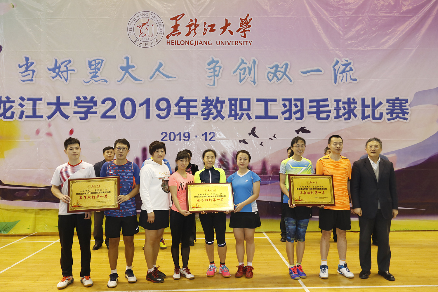 12月9日中午,“当好黑大人,争创双一流”学校2019年教职工羽毛球比赛全部赛程在体育馆主馆圆满结束,并举行了闭幕式及颁奖仪式。学校党委常委、工会主席陈德明,校工会、校教职工文体总会、体育教研部、校教职工羽毛球协会主要负责人、各部门工会主席及各参赛代表队出席了闭幕式。