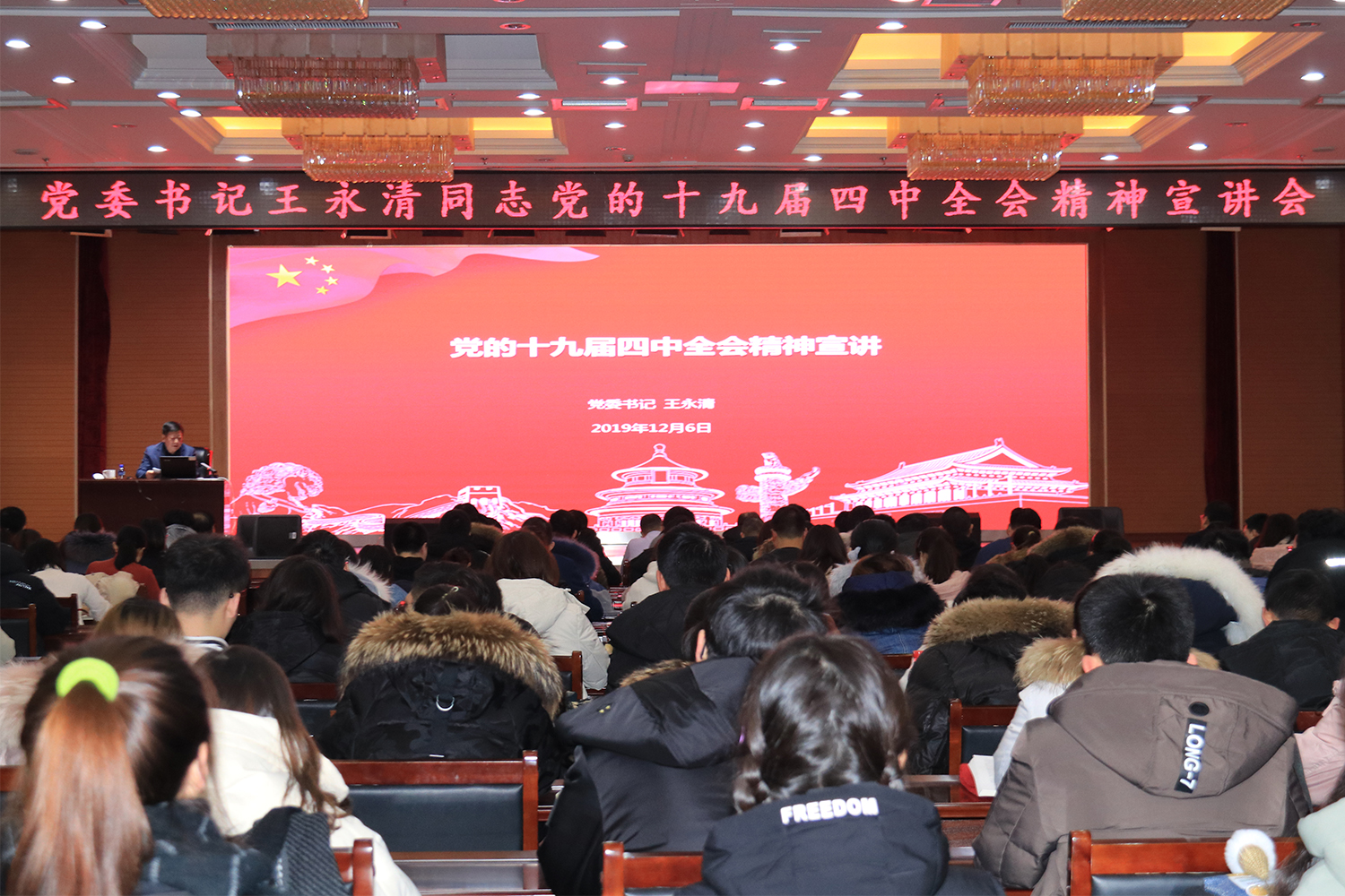 12月6日、10日,校党委书记王永清、校长付宏刚分别在主楼一楼报告厅、农学楼会议室为联系点和分管单位做党的第十九届四中全会精神宣讲,开启了宣讲团巡讲的序幕。学校领导详细阐述了党的十九届四中全会的基本情况和重大意义,系统解读了全会《决定》提出的主要内容,阐释了坚持和完善中国特色社会主义制度、推进国家治理体系和治理能力现代化的重要性和迫切性,并对贯彻落实全会精神提出了具体要求。学校领导要求,全校上下要充分认识坚持和完善中国特色社会主义制度、推进国家治理体系和治理能力现代化的重要意义;要深刻领会中国特色社会主义制度和国家治理体系的显著优势,坚定中国特色社会主义制度自信;要准确把握坚持和完善中国特色社会主义制度、推进国家治理体系和治理能力现代化的总体要求、总体目标和重点任务;要加强党的领导,确保全会确定的各项目标任务全面落实到位。