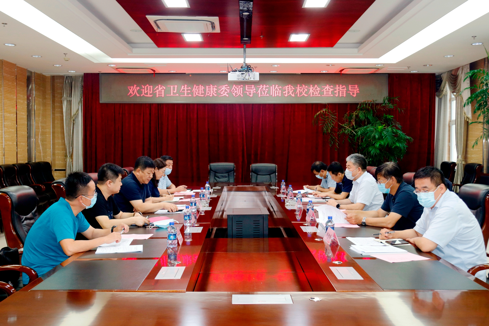 8月27日,省卫生健康委员会副主任方庆伟,省教育厅、省疾控中心、市疾控中心有关领导来我校检查指导2020年秋季学期开学准备及疫情防控工作。我校党委书记王永清,党委副书记丁宏,学校办公室、学生工作部、校医院主要负责人等陪同检查。