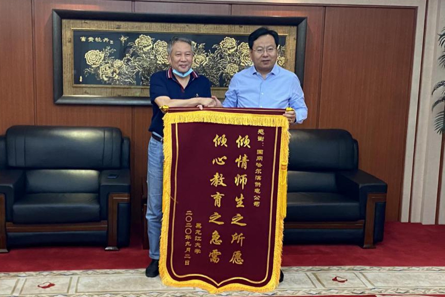 为表示对国网哈尔滨供电公司全力支持和协助我校抢修丽泽园变电所公寓线故障的衷心感谢,9月14日下午,校长付宏刚,学校办公室、校区管理处、后勤管理处等相关部门负责人一行赴国网哈尔滨供电公司,赠送锦旗并开展座谈。国网哈尔滨供电公司总经理、党委副书记纪会争等领导代表电力公司接受我校赠送锦旗,并就供电保障问题与付宏刚校长进行了会谈。
