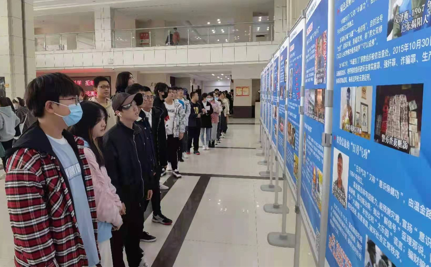 此次展出为广大学子上了一堂生动的思想教育课。学校将以此次活动为契机,组织反邪教讲座、知识培训、安全教育课反邪教章节、班长培训班等活动,深化国家安全日教育活动,引导学生提高防范意识,远离邪教。(摄影:薛瑞霖 宋佳卉)