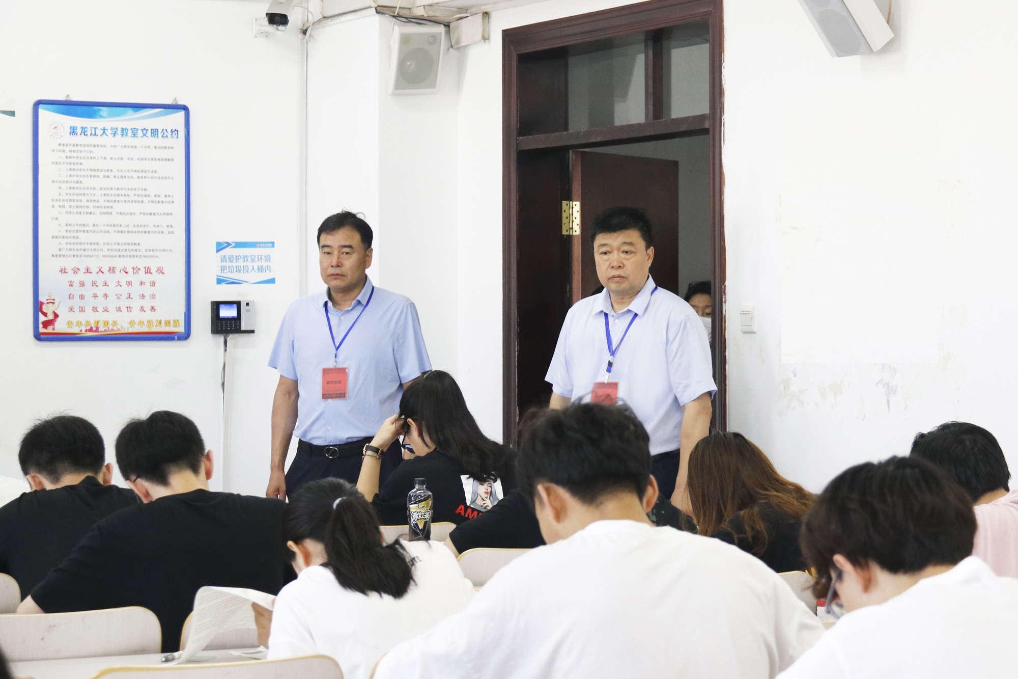 7月12日,我校2020-2021学年第二学期期末考试工作正式启动。上午8时,副校长严明,教务处、应用外语学院等考风考纪巡视组成员对汇文楼各考场展开巡视工作。