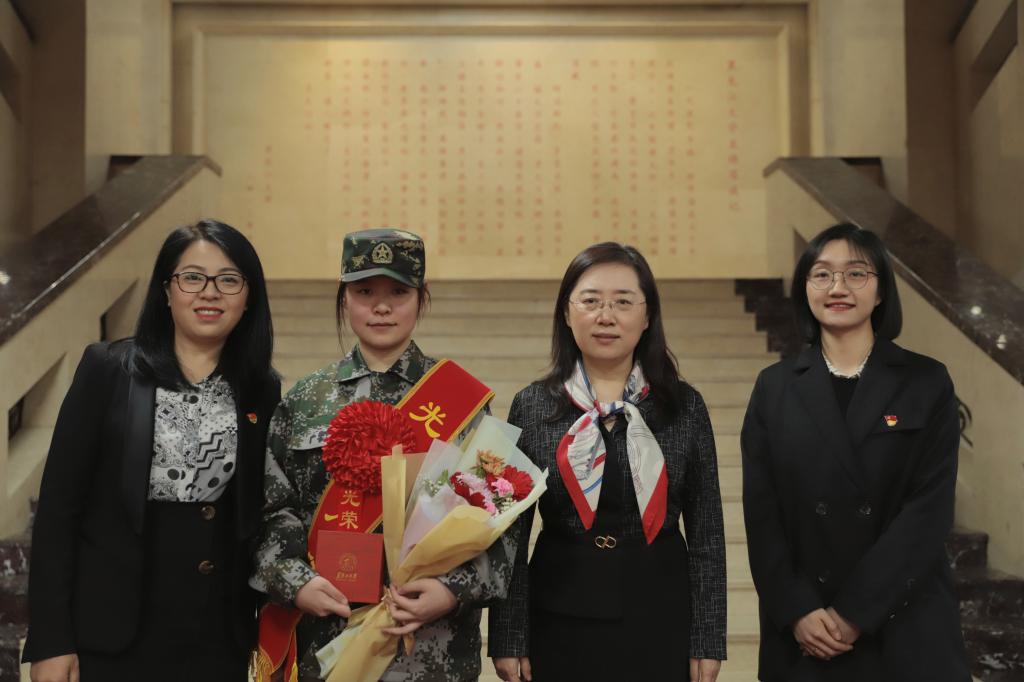 3月9日上午,黑龙江大学2023年春季入伍女兵参加役前集训欢送仪式在主楼一楼大厅举行。校党委副书记丁宏出席仪式并讲话,学生工作部(学生处、武装部)、相关学院主管学生工作领导及辅导员、退役大学生士兵代表及全体预定女兵参加仪式,学生工作部(学生处、武装部)部(处)长刘凤影主持仪式。
