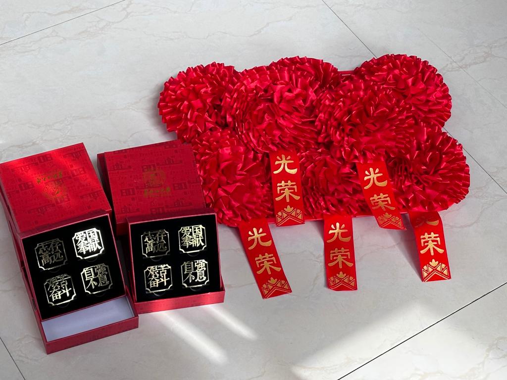 随后,出席领导、老师为预定女兵佩戴“光荣入伍”大红花、赠送校庆主题纪念书签。