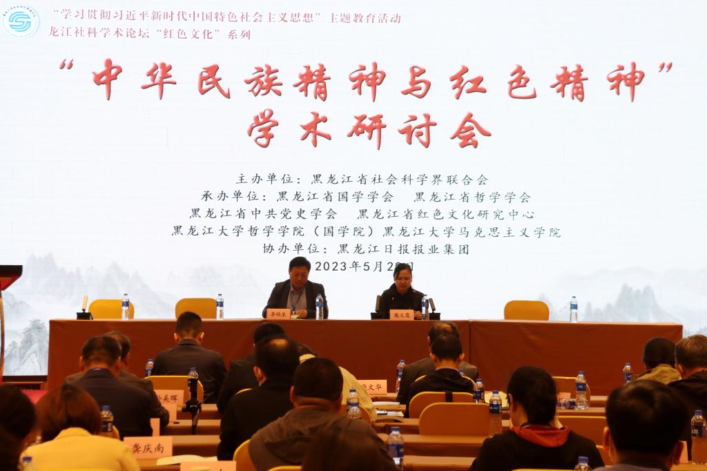 为全面贯彻落实党的二十大精神,充分挖掘龙江红色精神的思想内容和精神价值,深入探讨中华民族精神与龙江红色精神的内在联系,全面彰显龙江文化中的爱国主义、艰苦奋斗、勇于奉献等思想元素与价值情怀,5月20日上午,由黑龙江省国学学会、黑龙江省哲学学会、黑龙江省中共党史学会主办,黑龙江大学哲学学院(国学院)、黑龙江大学马克思主义学院联合承办的“中华民族精神与红色精神”学术研讨会暨黑龙江省国学学会第二次会员代表大会成功召开,来自省内外多所高校和科研院所的百余名专家学者参与本次会议。