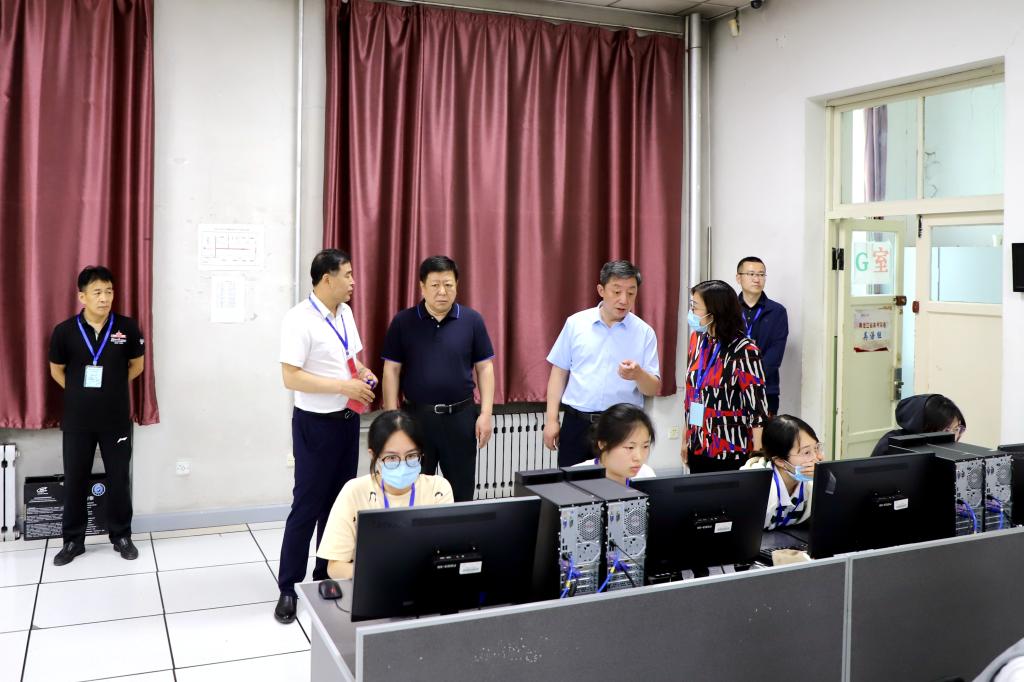 李石深入评卷现场,实地检查了评卷机房、技术支持、后勤保障等工作,认真听取学科组长关于评卷进度及质量监控等工作汇报,仔细询问管理流程、评卷标准、评卷纪律、监控措施等方面学校采取的相关措施。李石指出,黑龙江大学一直以来高度重视高考评卷工作,在学校领导精心指导下,各部门协调有序,组织到位,工作富有成效。他代表省招生考试院对黑龙江大学多年来高质量零差错的完成高考评卷任务表示衷心感谢。
