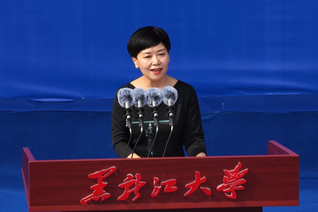校长王敬波在活动上讲话。她代表全体师生员工对2025级新生的到来表示热烈欢迎。她围绕大学生成长与时代责任这一话题,向同学们提出了四点建议:有理想,志存高远,终能境界宏阔;善学习,水滴石穿,自在积淀深厚;敢创新,独辟蹊径,方见别样洞天;勤修身,行有所止,终得气象万千。王敬波表示,希望同学们潜心探寻真理之路,用心体悟黑大情怀,在龙江沃土中淬炼成长,于时代星河里绽放光芒。学校将会做同学们求知向学的坚强后盾、锤炼品格的精神家园、眺望世界的广阔窗口,让黑大岁月成为同学们生命中最蓬勃、最深刻、最无悔的篇章!