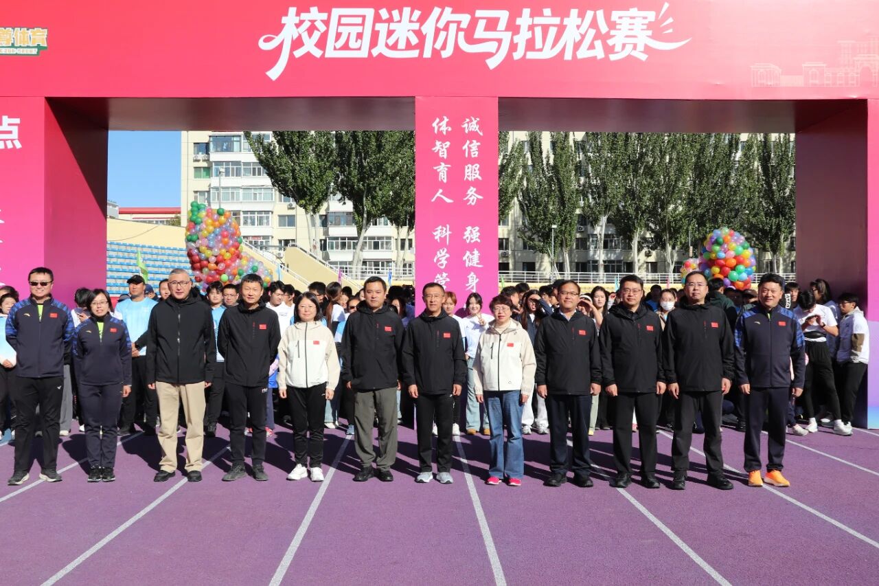 校党委书记迟宝旭宣布比赛开始,学校领导共同为马拉松赛鸣笛开跑。