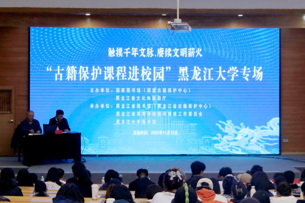 本次“古籍保护课程进校园”黑龙江大学专场活动,是中华优秀传统文化浸润校园的生动实践。它为学子搭建了触摸历史、对话传统的桥梁,筑牢文化自信的根基,也为校地协同推进古籍保护、激活地域文化资源开辟了新路径。未来,我校将持续开展相关活动,凝聚传承力量,让中华优秀传统文化在青年一代手中赓续绵延,为古籍保护工作注入新动能。(摄影:安子轩 许可 张同 赵涵墨)