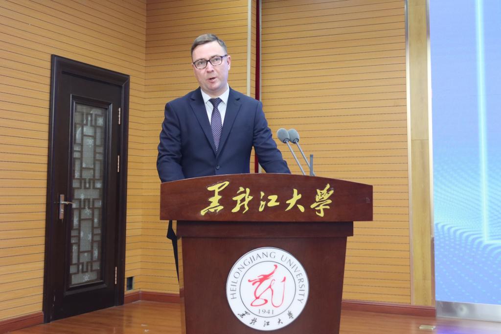斯凯顶奢·亚历山大肯定了黑龙江大学作为高水平俄语人才培养基地的贡献,期待黑龙江大学持续推进中俄联合人才培养和科研合作,培养更多能够推动两国全方位合作的青年人才。