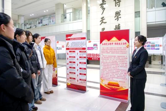 12月1日,学校在汇文楼大厅举办宪法专题展览,并通过法学生的生动讲解,系统介绍了我国现行宪法的发展历程、结构、价值等,将宪法条文转化为具体的宪法知识。主题展览活动吸引了师生们的积极参与,讲解宪法知识,推动宪法实施,让法治文化在这个初冬成为校园的特色风景线。