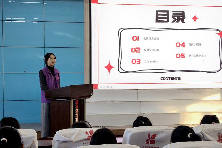 活动中,师生们观看北京主会场直播,线上线下同步举行升旗仪式,跟随直播开展宪法晨读、合唱《宪法伴我们成长》,并观看了第十届全国学生“学宪法 讲宪法”活动全国总决赛演讲比赛优秀选手展演。