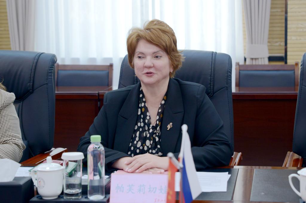 帕芙莉切娃感谢黑龙江大学的热情接待,并充分肯定黑龙江大学的对俄办学成果。她介绍了俄罗斯国立普希金俄语学院的办学历史和学科优势,并提议双方在联合出版俄语教材、俄语学术期刊论文发表,以及依托“中俄国际云课堂”等平台开展线上教师培训,提升教师教学综合素养等方面开展深入合作。希望以此次会谈为契机建立常态化沟通机制,务实推进各项合作举措落地见效。