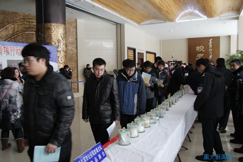 本次禁毒宣传教育活动以参观主题展板和禁毒支队收缴物品展为主。在哈尔滨市公安局禁毒支队收缴物品展台前,张弢副主任为参观师生仔细讲解了各种毒品的危害和相关的情况,使师生们对毒品的危害有了更加全面、直观地认识和了解。