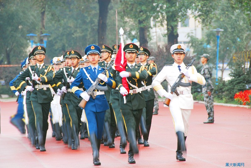 9月24日清晨5点,我校全体国防生在联通广场集合,并举行了庄严的“庆国庆”升旗仪式。本次三军仪仗队的升旗仪式是“庆国庆,爱祖国”主题系列活动其中之一,除此之外,还有国防生誓词的宣讲及“祖国在我心中”的主题演讲活动。中国人民解放军驻黑龙江大学后备军官选拔培训工作办公室主任张家勇,干事洪庆华、赵庆阳、徐冠楠等出席了本次升旗仪式。