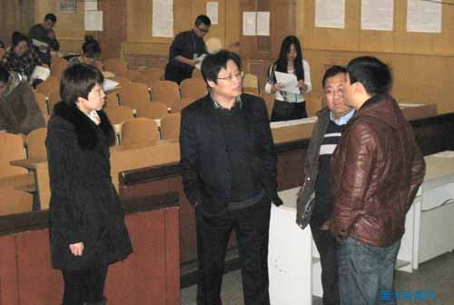 2013年硕士研究生招生考试黑大报名点现场确认工作于11月10日至14日在一号楼模拟法庭进行。期间,我校副校长丁立群于14日在研究生院董玉庭院长等的陪同下,对报名点确认现场进行了视察,并对现场确认工作的各环节进行了详细的指导。