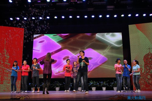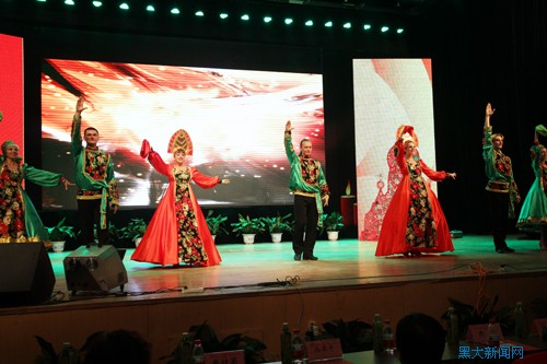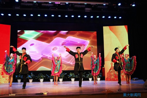 由我校俄语学院的10名学生组成的快乐伙伴合唱团在加林娜的带领下,出色地完成了俄罗斯歌曲《三个愿望》的演唱,得到了现场观众热情的掌声,这个主要由11级学生组成的小型合唱团用轻松的声音和动作展现出了俄语语言的魅力,展现了我校在全国高校中独树一帜的俄语办学特色。