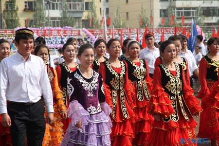 天赋逐渐显露出来。运动会、艺术节、女生节、演讲赛、征文赛、各类文艺演出……阿勒泰学员的身影活跃其间,着实掀起了校园里强劲炫丽的民族风潮。热情的《黑走马》舞步,悠扬的冬不拉琴声,牵出万千风情的火红裙裾,这些“仿佛天生就会唱歌跳舞”的姑娘小伙儿们尽情展示着哈萨克族民族文化最火热绚烂的一部分,为黑大学子带来了一场又一场视觉盛宴。