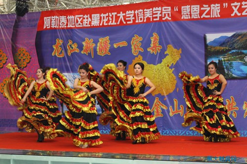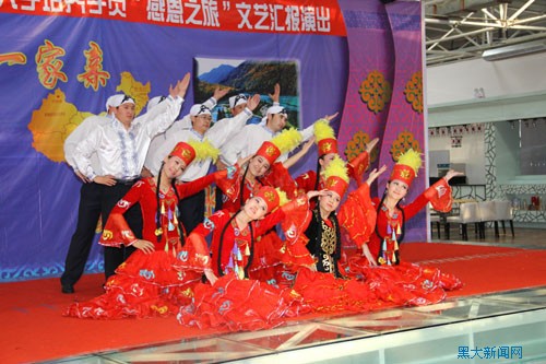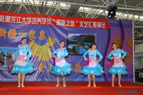 伴着哈萨克族姑娘活力奔放的舞蹈《加尔加尔》,文艺演出拉开了序幕。独唱《难忘的时光》、手语表演《感恩的心》以及冬不拉独奏《喜庆》等节目表现了学员们积极向上的精神面貌以及对第二母校黑龙江大学的不舍之情;快板儿《新疆人民谢党恩》代表着学员对党和政府的深情表白;整场演出包括手语表演、舞蹈、健美操、独唱、四重唱、独奏、弹唱等多种形式,精彩迭出,赢得了观众的阵阵掌声和喝彩。最后,在群舞《爱我中华》喜庆热烈的氛围中,文艺演出圆满落幕。