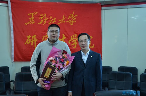 会议最后,研究生学院为李博弘授予了“黑龙江大学研究生献血楷模”荣誉称号。在与会人员热烈的掌声中,研究生学院党委书记王司瑜为其颁发了荣誉证书。