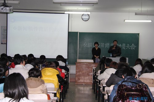 3月21日下午,校报记者团培训动员大会在汇文楼466召开,应我校宣传部之邀,《光明日报》驻黑龙江记者站记者张世英对学生记者进行培训。党委宣传部副部长杨其滨出席并主持会议。