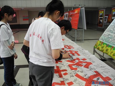 为进一步推进优良学风建设,维护学术诚信,弘扬科学精神,营造良好的学术气氛,4月24日,我校在汇文楼大厅举行了“恪守学术诚信,抵制学术不端”学生签名承诺活动。我校学生踊跃参与,教师积极声援,活动圆满成功。