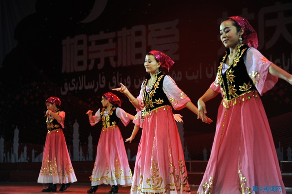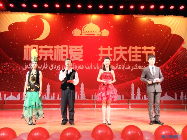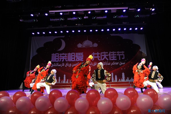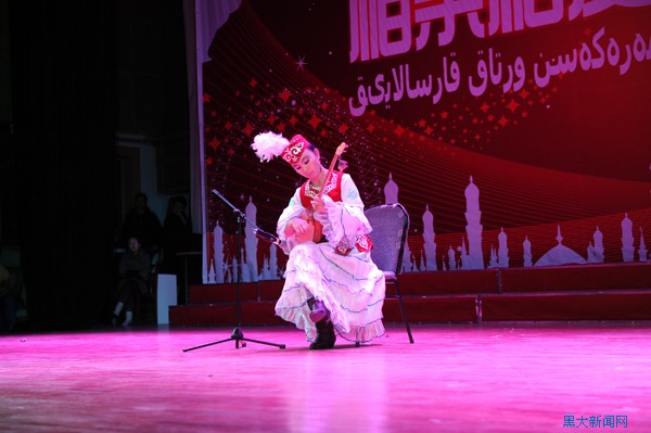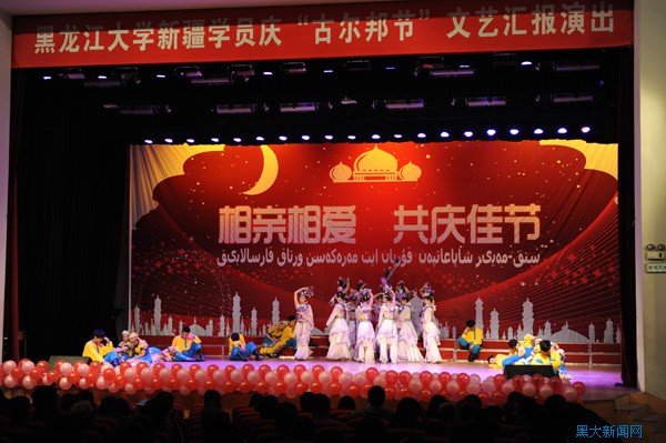 伴随着《丁香花与布拉吉》的开场舞,黑龙江大学新疆学员庆“古尔邦节”文艺汇报演出拉开帷幕。演出以彰显浓郁民族特色的新疆歌舞为主线,校艺术团和各文艺社团倾情加盟,在“相亲相爱,共庆佳节”的主题引领下,援疆高校对新疆学员的关注、关爱以及学员们对第二母校的感恩与祝福得到淋漓尽致的表达。